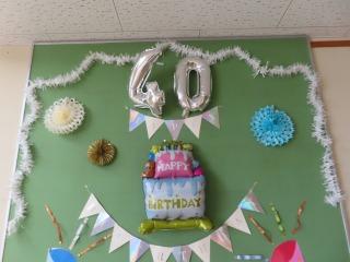 図書室の前の掲示板も創立40周年式典モード。ありがとうございます。