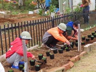 いつも公園脇花壇をお世話してくださっている地域の方が、既に花壇にはびこっていた雑草を抜き、土をほぐし、肥料も入れてくださっています。感謝です。
