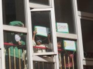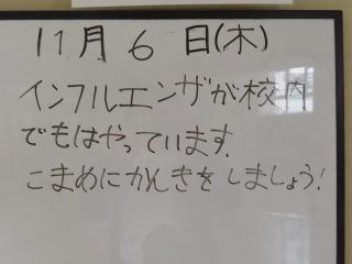 今日の保健室前のメッセージ↓ 校内でも工夫をしながら感染拡大防止に努めています。