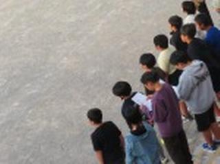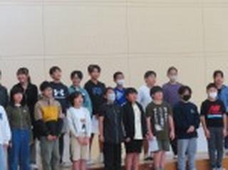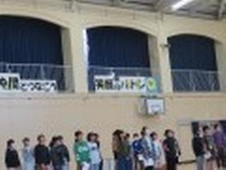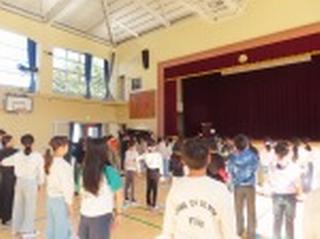 体育館をのぞくと、2年生たちが創立40周年記念式典に向けての準備をしていました。
