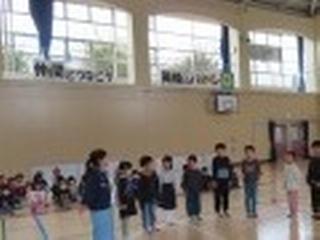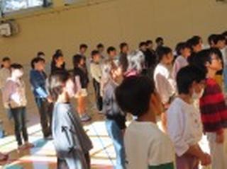 6年生たちも、体育館で創立40周年記念式典に向けて準備をしていました。