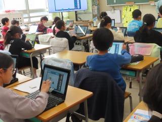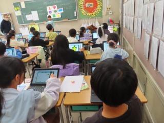 じいっと耳をすまして、友達の話す「I like~」を聞き取って、GIGA端末の画面上で素早く見つけて回答…ゲーム感覚で楽しんでいました。