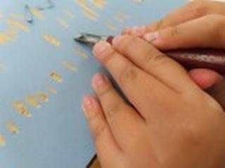 4年生は、図工室で初めての彫刻刀を扱っていました。慎重に慎重に。