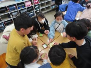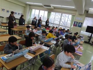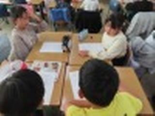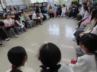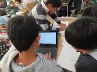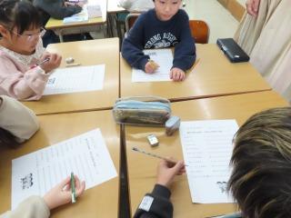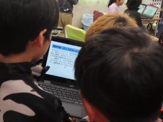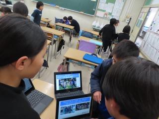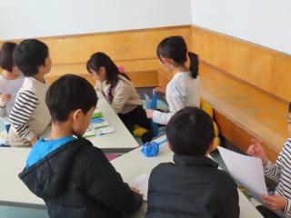 4年生の教室では、クラスの枠を越えて総合的な学習の時間の発表準備をしていました。発表の練習をしたり、言葉の吟味をしていたり…。