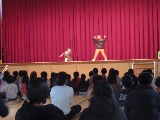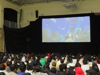1年生たちは目の前に大きなスクリーンがあったこともあり、食い入るように見入っていました。鑑賞後に、ある6年生に「どうでしたか?」と尋ねたところ、「影絵で子どもたちを楽しませようとしてくれていて、素敵だなと思った」という感想が聞かれました。