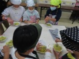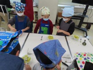 みんなで「おやつ」を作る授業は楽しいね。ふかしたサツマイモをこねこね。まんまるになるように、こねこね。