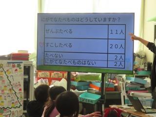 2年生は栄養教諭による食育の授業がありました。「食べ物の3つのはたらきを知る」という学習内容。