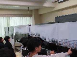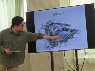 地球温暖化に伴い、年間降雨量も増えています。南原小学校はこのまちの「高いところ」にあります。このまちに降った雨は「低いところ」にある平瀬川に流れ込みます。それを3D画像や立体模型で可視化して示してくださいました。