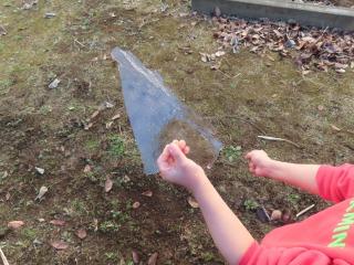 南庭では、1年生の子どもたちが霜を踏んだり、わいわい池の氷の欠片をつかんだりしていました。