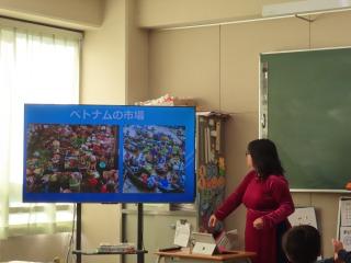 今日は、3年生が外部講師の先生をお招きして多文化共生をめざす学習をしていました。今年は、アジア圏(ベトナム・シンガポール・タイ)の文化に触れました。きれいな民族衣装を身を包んだ先生方とともに…