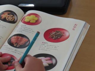 ちょうど給食前の4時間目に2年生が、道徳で「おせちのひみつ」(伝統と文化の尊重、国や郷土を愛する態度)の学習していました。