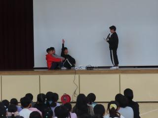 今日の南原モーニングは、1給食委員会からは「ぱくぱくクイズ」の参加の仕方を寸劇でアピール、2保健委員会はスライドを用いた「いまの季節の過ごし方」の呼びかけ…