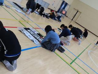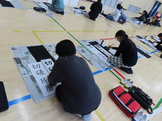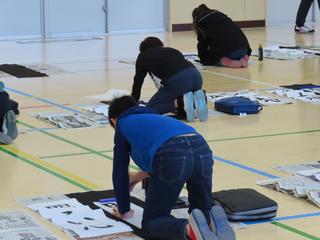今日は、3・4・5・6年生の子どもたちが体育館で書き初めをしました。