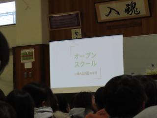 生徒会の役員の生徒さんが、中学校での1日の流れ、1年間の行事、部活動のことなどのオリエンテーションをしてくれるのを聞いたり、教科ごとに分かれて教室で中学校の先生と学習をしたりしました。