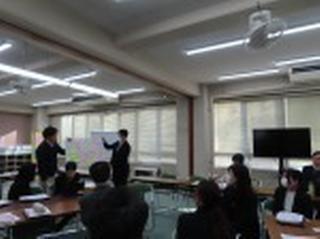 今日の午後、1年生が授業公開をして、そのあと研究授業協議会をもちました。