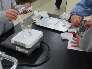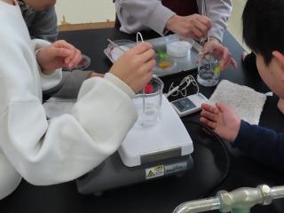◆5年生は「ものの溶け方」で「水に溶けるものの量には限りがあるのかを調べる中で、水を増やせばもっと溶けるんじゃないかな?」「溶け残っちゃったけど、お湯さえあれば…」といったつぶやきや気づきが生まれました。今日は「水の温度を上げたらどうなるか」の実験。