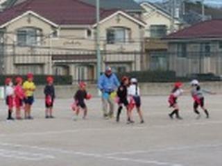 そんな冷たい北風の吹く中、3・4年生は外部講師の先生方にフラッグフットボール教室をしていただきました。