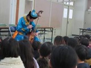 モンゴル大地の音色に聞き入っていた2年生の子どもたち。モンゴルジャンケンも教えていただき、異国文化にふれることができる時間になりました。