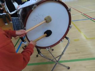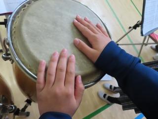 体育館では、6年生が合奏練習中。それぞれが自分のパートに責任をもち、繰り返し個人練習に取り組んでいました。