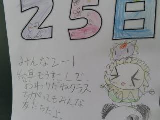 教室にある年度末までのカウントダウン表が1枚ずつ、めくられています。1~5年生は残すところ、あと25日なんですね。