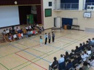 今日の中休みには、演劇クラブ&ダンスクラブの自主公演がありました。自分たちで計画し、自分たちで来場を呼びかけ、自分たちのマイクパフォーマンスで盛り上げました。