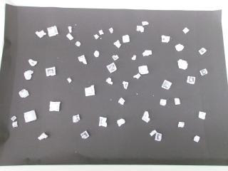 きらきらと綺麗。化学って不思議です。「理科用語のまとめ」のビンゴをして1粒ずつ、大事そうにおうちに持って帰ったそうです。