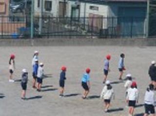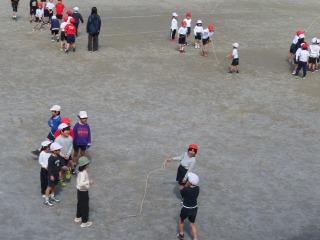 校庭では1年生が自分たちで長縄をして楽しんでいました。仲良く声を掛け合って、良い感じ。