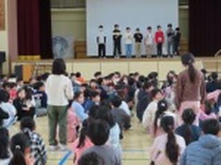 合奏や歌のプレゼント…一緒に踊ったり、力くらべをしたり、問題を出したり…6年生からも合唱と合奏のお礼がありました。
