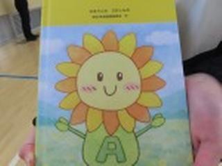 1年間に最も図書の貸出をしてくれた各学年のベスト10や、全校でのベスト10のみなさんを表彰してくれました。今年度の図書館利用の総括。それだけでなく、図書委員会が作った創立40周年記念オリジナル絵本の紹介もしてくれました。