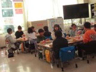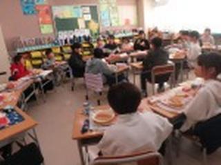 「たのしいよぉ」と教えてくれる子がたくさんいました。楽しいといつもの給食も100倍おいしく感じられますよね。