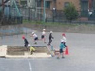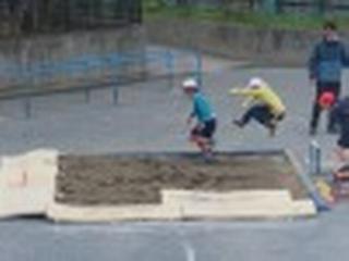 校庭では4年生が幅跳びをしていました。先生のアドバイスの後にはぐぐっとフォームがよくなり、記録が伸びているのが分かります。