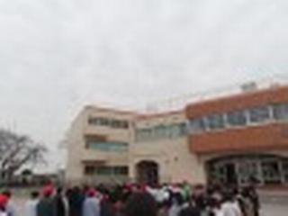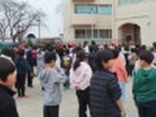 給食後の短時間で、来週の木曜日の朝に行う「6年生とのお別れ式」のリハーサルをしました。校庭に集まって並ぶのは運動会以来ですね。