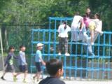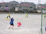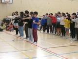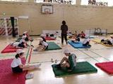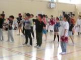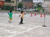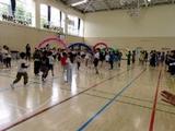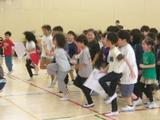 5年生がシャトルランをしていました。互いに声をかけ応援し合って力を出していました。