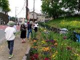 2年生が町探検に行きました。きれいなお花を見つけたり春を探したり川をのぞきこんだり、公園を見つけると思わず遊んでしまったりと大忙しでした。花づくり名人や和菓子を売りに来ているお店の人とも出会いました。これからの町探検も楽しみです。