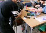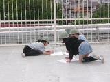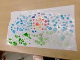 5年生は図工でビニールの上に色水を落とし、作品をつくっていました。角度を変えて撮影する様子も真剣そのものでした。