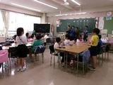 6年生が学年で外国語の学習をしていました。進んで英語で話す姿勢が高学年らしく立派です。教室の外にしっかりとならんだ上履きにも6年生の姿勢が感じられます。