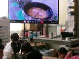 今日も1年生は?解決のために職員室を訪ねてきました。給食の先生に「給食室を見せて」とお願いしました。残念ながら給食室には入れないため、ライブ中継で給食の調理の様子を見せてもらいました。今日の給食は一段とおいしかったことでしょう。
