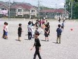 今日はよい天気。子どもたちが元気いっぱいに遊ぶ校庭です。