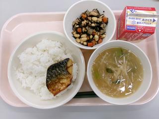 12月16日 ごはん さばの塩焼き 五目豆 みそ汁 牛乳