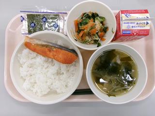1月27日 ごはん 焼きのり さけの塩焼き 煮びたし みそ汁 牛乳