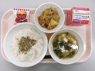1月9日 ごはん 大根葉のふりかけ ちくわの磯辺揚げ めった汁 牛乳