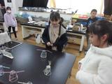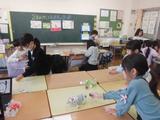 2年生が生活科でおもちゃ作りをしています。「おもちゃが思うように動かない」「もっと面白い遊びができないかな」「説明がうまく伝わるかな。」いろいろなお悩みが出てきました。「ここはもっと固い紙で作るとよさそうだよ」「風を当てる場所がこつだね。」「そっと団扇を動かすように言うといいと思うよ」5年生が相談を受け、よりよいおもちゃランドになるようにアドバイスをしていました。