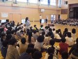 自分たちのすきなもの(例えば「やきにく」)を様々なリズムに乗せて変化させ、2人から3人で掛け合いを楽しみました。久地小ラッパーの誕生です。発表を聞いている人も、思わず手拍子をしたり体を揺らしたりしていました。