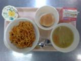 3月11日(水) ミニロールパン スパゲッティミートソース カレーベジタブルスープ しょうなんゴールドゼリー ぎゅうにゅう