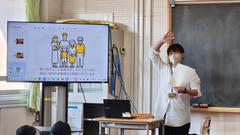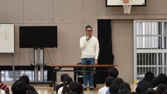 1人目のゲストティーチャーは本校の卒業生で、現在は世界で活躍するプロマジシャンの金森駿介さん。実際にマジックも披露してくださり、子どもたちは声を上げながらもとても喜んでいました。お話では仕事で苦労したこととしてコロナ禍の影響で3ヶ月仕事がなかったこと。しかし、自分のマジックで人が感動してくれたり、幸せな気持ちになってくれていることが一番のやりがいだということ。そして、働くということは大変なことや辛いこともたくさんあるけど、気持ちを前に向けて、好きなことを一生懸命やり続けることが大切だというメッセージを頂きました。先輩の言葉に子どもたちも耳を傾けていました。