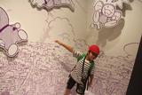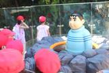 2年生のミュージアム見学。歩いた先にはドラえもんのお出迎え。2階のスペースや広場を楽しむだけでなく、原画や漫画を描くために使う道具など、大人がじっくり見るコーナーを熱心に見ていました。