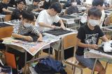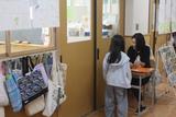 中休みに行われた工作教室。今回はけしごむハンコを選んで押してオリジナルのしおりづくりに挑戦しました。