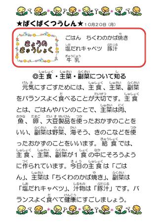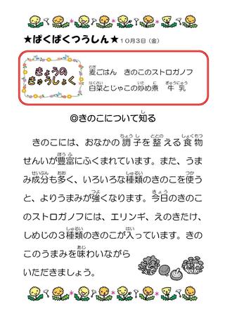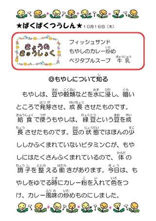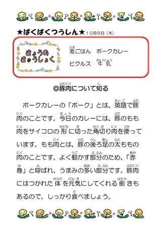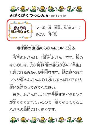 10月 給食献立表