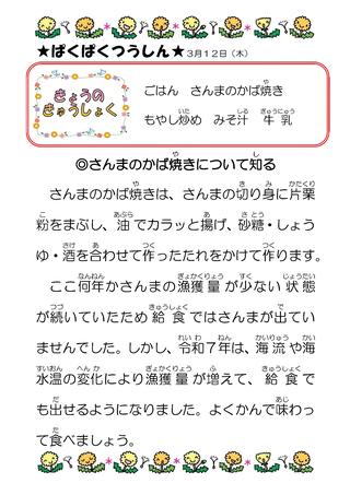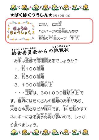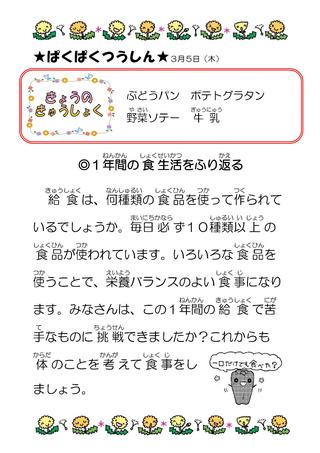 3月 給食献立表