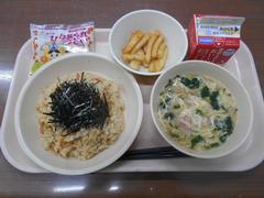 今年度最後の給食でした。最後は王道の「カレー」でした。6年生の中には、人生で最後の給食になる子もいるかもしれません。型抜きチーズは何が当たったでしょうか。私は「ライオン」